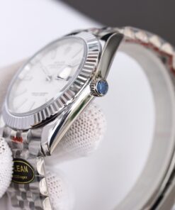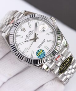 Rolex Datejust mit raffiniertem Design. Mit 41mm Edelstahlgehäuse, Automatikwerk, Saphirglas und Edelstahlarmband.