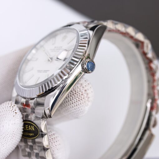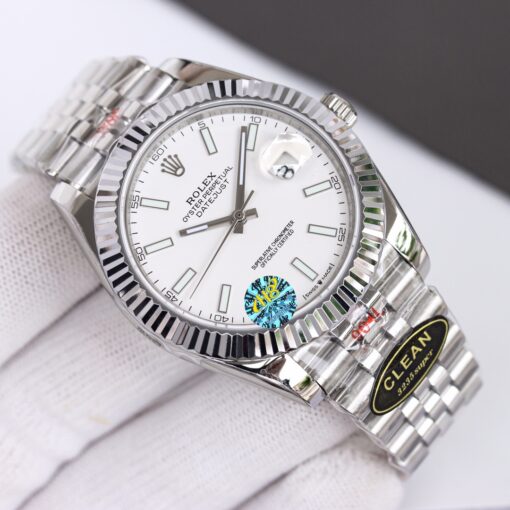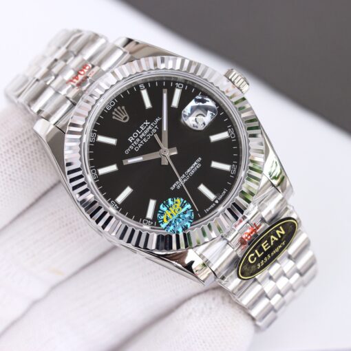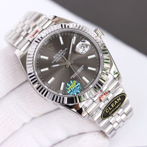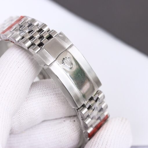Rolex Datejust mit raffiniertem Design. Mit 41mm Edelstahlgehäuse, Automatikwerk, Saphirglas und Edelstahlarmband.
