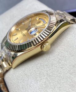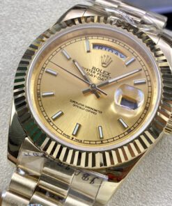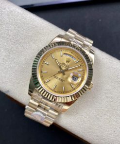 Rolex Day-Date Serie. 40-mm-Durchmesser. Ausgestattet mit importiertem japanischen 8215 mechanischem Uhrwerk. RingCommand dreieckig geriffelte Lünette. Kratzfestes Saphirglas. Gehäuse aus 316L-Edelstahl. Oystersteel-Armband mit Drei- oder Fünfglied-Optionen. Originale Schließe.