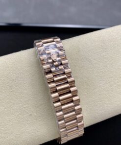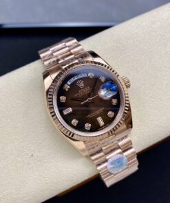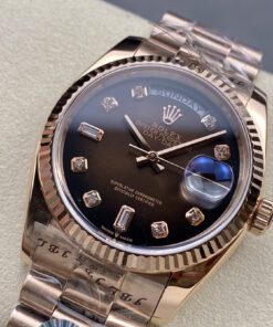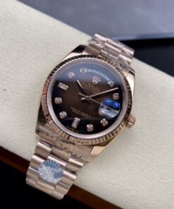 Rolex Day-Date Serie. 40 mm und 36 mm Durchmesser. Ausgestattet mit importiertem japanischen 8215 mechanischem Uhrwerk. RingCommand dreieckig geriffelte Lünette. Kratzfestes Saphirglas. Gehäuse aus 316L-Edelstahl. Oystersteel-Armband mit Drei- oder Fünfglied-Optionen. Originale Schließe.