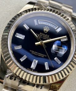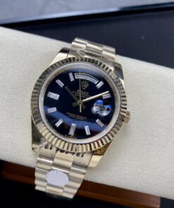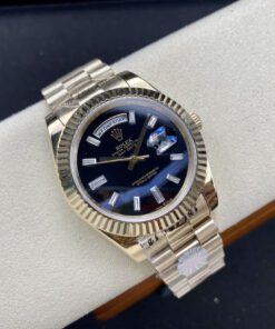 Rolex Day-Date Serie. 40-mm-Durchmesser. Ausgestattet mit importiertem japanischen 8215 mechanischem Uhrwerk. RingCommand dreieckig geriffelte Lünette. Kratzfestes Saphirglas. Gehäuse aus 316L-Edelstahl. Oystersteel-Armband mit Drei- oder Fünfglied-Optionen. Originale Schließe.