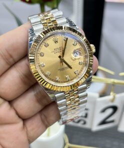 Rolex Day-Date 41mm. 41-mm-Gehäuse aus Oystersteel und Gelbgold mit 3235-Uhrwerk. Tag- und Datumsfunktionen mit Saphirglas und Cyclops-Linse.