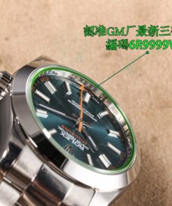 GM Factory Rolex Milgauss 116400 mit blitzförmigem Sekundenzeiger und grünem Saphirglas. Verfügt über blaue, grüne, weiße oder schwarze Zifferblattoptionen. Gefertigt aus 904L Oystersteel mit hoher Korrosionsbeständigkeit. Antimagnetischer doppelter Gehäuseboden. Ausgestattet mit speziell angepasstem 3131 integriertem Werk. 40-mm-Gehäusegröße mit poliertem und gebürstetem Finish. Elektroblaues Zifferblatt kombiniert mit grünem Saphirglas und blitzförmigem Sekundenzeiger. Inklusive NFC-Karte für Authentizität.