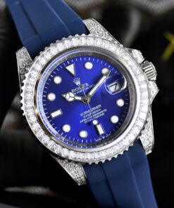 Rolex Submariner Serie Uhr mit modifizierter Lünette und Naturstein-Einlagen. 9015 Automatikwerk. Leuchtendes Zifferblatt. Maßgeschneidertes Gummiarmband mit verstellbarer Schließe. 40mm Gehäuse.
