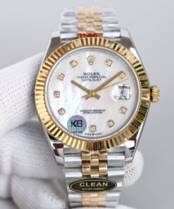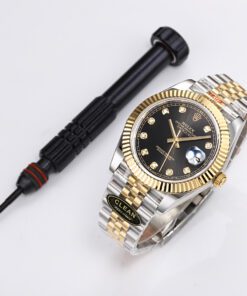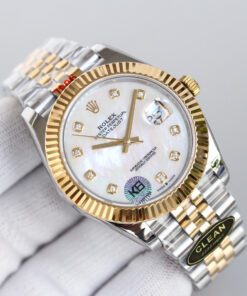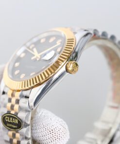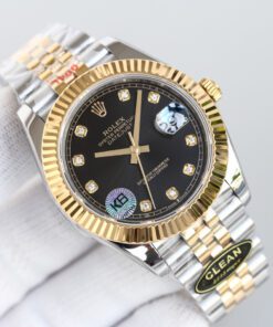 Rolex Datejust 41-mm. Automatisches mechanisches Werk mit Swiss 2836-2. Gehäuse aus 904L Edelstahl mit geriffelter Lünette. Kratzfestes Saphirglas. Armband aus Edelstahl mit Clean-Fabrik-Gliedern. Super-LumiNova-Anzeige.
