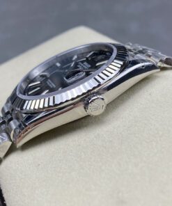 Rolex Datejust. Automatisches mechanisches Uhrwerk mit Schweizer 3235. 904L Edelstahlgehäuse mit geriffelter Lünette. Kratzfestes Saphirglas mit Zyklopenlinse. Edelstahlarmband mit Oysterlock-Schließe. Klassisches und zeitloses Design.