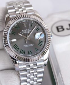 Rolex Datejust. Automatisches mechanisches Uhrwerk mit Schweizer 3235. 316L Edelstahlgehäuse mit geriffelter Lünette. Kratzfestes Saphirglas mit Zyklopenlinse. Edelstahlarmband mit Oysterlock-Schließe. Zeitlose Eleganz.