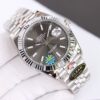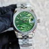 Rolex Datejust 36mm. Angetrieben von einem 2824 Werk mit einstellbarem Kalender. 904L Edelstahlgehäuse mit AR Factory Stahlarmband und platinierter Lünette. Sonnenstrahlen-Zifferblatt mit minzgrüner Option. Schweizer C1+C3 Leuchtmasse für passende Stundenmarkierungen und Zeiger. Weißgold-beschichtete Kronenmarkierungen. Drei-Code-Übereinstimmung.