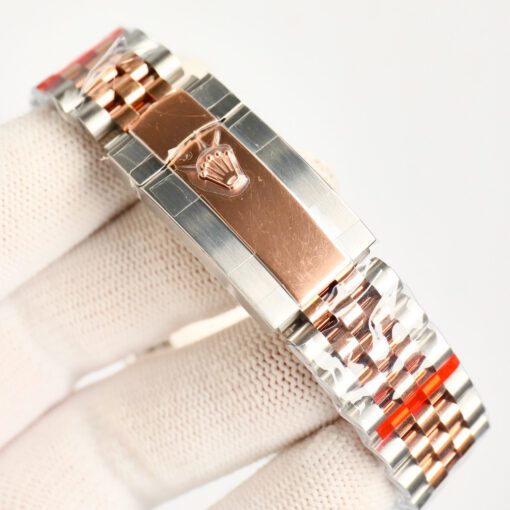 Rolex Datejust 36mm. Angetrieben von einem 2824 Werk mit einstellbarem Kalender. 904L Edelstahlgehäuse mit AR Factory Stahlarmband und platinierter Lünette. Sonnenstrahlen-Zifferblatt mit minzgrüner Option. Schweizer C1+C3 Leuchtmasse für passende Stundenmarkierungen und Zeiger. Weißgold-beschichtete Kronenmarkierungen. Drei-Code-Übereinstimmung.