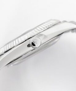 Rolex Datejust mit einem 40-mm-Edelstahlgehäuse,Saphirglas mit 2,5-facher Vergrößerung und Oysterarmband. Verfügt über ein 2836 Uhrwerk mit sofort springendem Datum und präziser Zeitmessung.