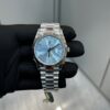 Rolex Day-Date 40, mit einem 40mm x 12mm 904L Edelstahlgehäuse mit Oyster-Struktur und verschraubter Krone. Das Saphirglas mit 2,5-fach Datumsvergrößerung sorgt für Klarheit. Angetrieben von einem 2836 automatischen Uhrwerk mit sofortiger Tag-Datums-Anpassung, bietet es Präzision und Komfort mit einem perfekt sitzenden Stahlarmband.