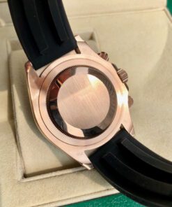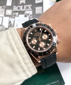 Rolex Daytona. Automatisches mechanisches Uhrwerk. 316L Edelstahlgehäuse mit polierter Keramiklünette. Kratzfestes Saphirglas. Edelstahl- oder hochwertiges Gummiarmband mit originaler Schließe. Zeitloses Design für erfolgreiche Persönlichkeiten.