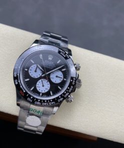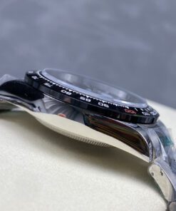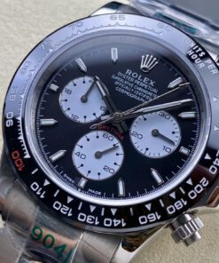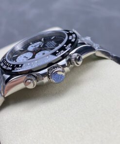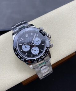 Daytona-Serie mit 40-mm-Gehäuse. Vollautomatisches mechanisches Werk. Importierte polierte Keramiklünette. Kratzfestes Saphirglas. Gehäuse aus 904L Stahl. Drei-Glieder-Armband oder hochwertiges Gummiarmband mit originaler Schließe. Klassisches Design für anspruchsvolle Herren.