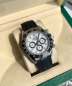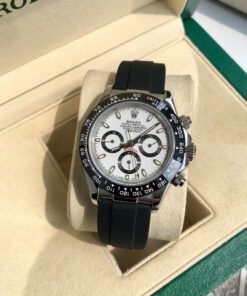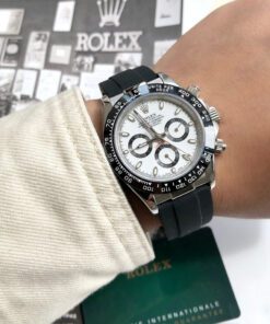 Rolex Daytona. Automatisches mechanisches Werk. Gehäuse aus 316L Edelstahl mit polierter Keramiklünette. Kratzfestes Saphirglas. Armband aus Edelstahl oder hochwertigem Gummi mit originaler Schließe. Zeitloses Design für erfolgreiche Personen.