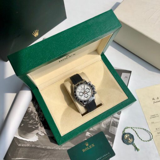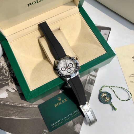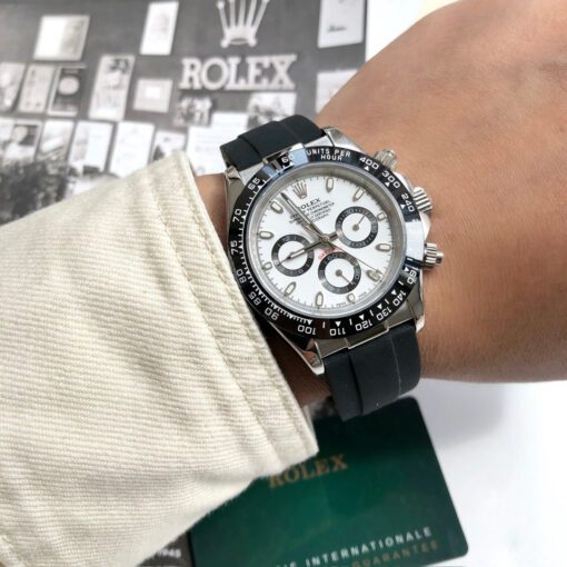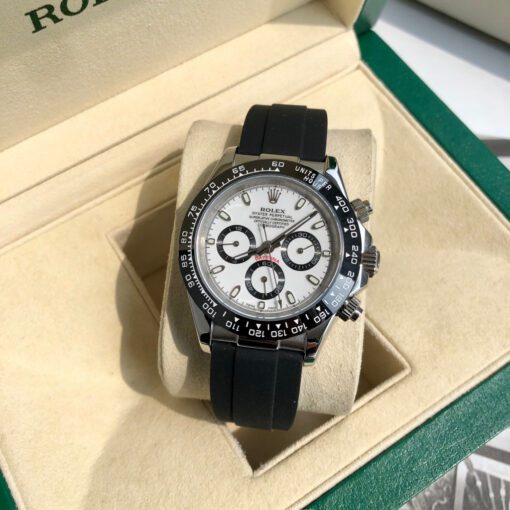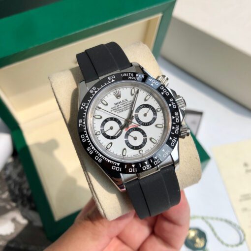 Rolex Daytona. Automatisches mechanisches Werk. Gehäuse aus 316L Edelstahl mit polierter Keramiklünette. Kratzfestes Saphirglas. Armband aus Edelstahl oder hochwertigem Gummi mit originaler Schließe. Zeitloses Design für erfolgreiche Personen.