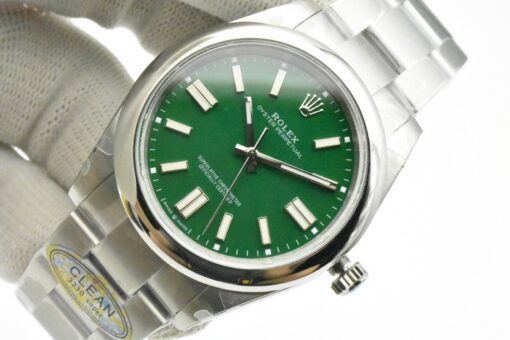 Rolex Oyster Perpetual 41mm von Clean Factory. Verfügt über ein 3230 integriertes Werk ohne Kalender-Leerlaufrad. 904L Edelstahlgehäuse und -armband. Neun Zifferblattfarboptionen ohne Farbunterschied zum Original. Schweizer SL Blaues Leuchtpulver.