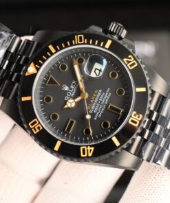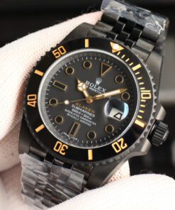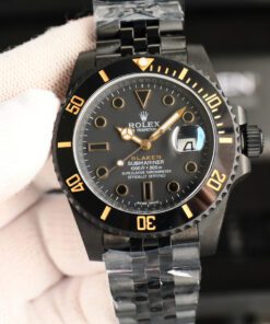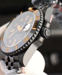 Blaken Rolex Submariner: Verfügt über ein DLC-schwarz beschichtetes Gehäuse für ein elegantes, langlebiges Finish. Dunkel-schwarzes Zifferblatt mit sandgestrahlter Textur für eine einzigartige Ästhetik. Integriertes 3135 Uhrwerk sorgt für präzise und stabile Zeitmessung. 40 mm Gehäuse mit 11 mm Dicke für ergonomischen Komfort.