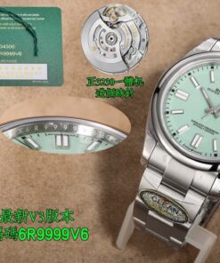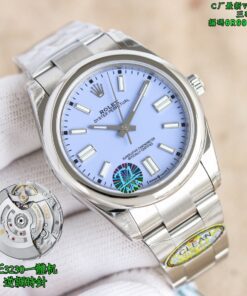 Clean Factory Oyster Perpetual 126000 mit gelben, blauen oder lila Zifferblattoptionen. Angetrieben von einem 3230 integrierten Werk ohne Kalender-Leerlaufposition. Zifferblattfarben entsprechen dem Original ohne Farbunterschied. Verfügt über polierte abgeschrägte Markierungen und fortschrittliche Drucktechnologie für scharfen Text. Superleuchtende Zeiger ohne Grate. Neun originale Zifferblattfarben verfügbar. 36mm bis 41mm Gehäusegrößen mit 904L Stahlkonstruktion. Inklusive NFC-Karte für Authentizität.