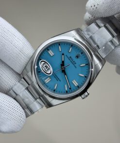 Rolex Oyster Perpetual 3641 Serie Uhr. 36mm oder 41mm 904L Edelstahlgehäuse. 3230 integriertes Werk mit Schweizer eisblauem Leuchtmarkierungen. Saphirglas. Polierte Stundenmarkierungen. Edelstahlarmband für optimalen Komfort.