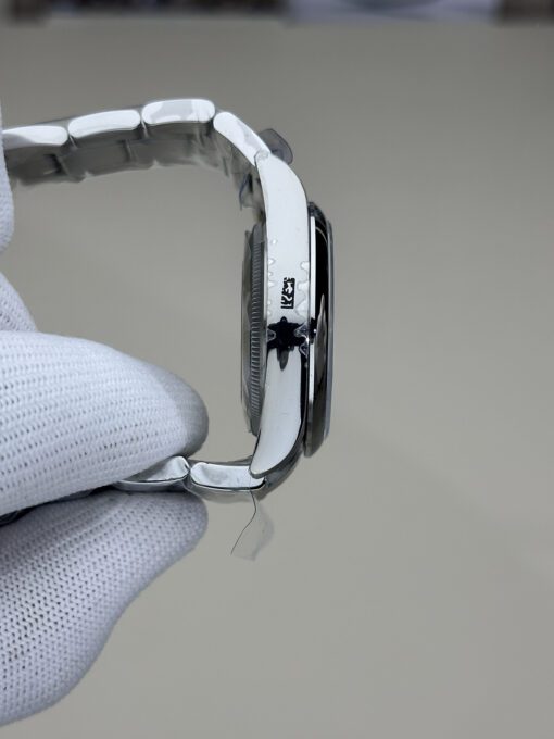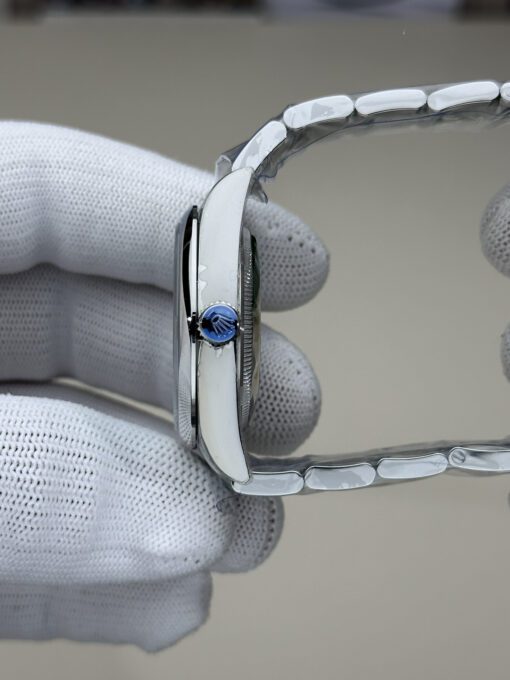 Rolex Oyster Perpetual 3641 Serie Uhr. 36mm oder 41mm 904L Edelstahlgehäuse. 3230 integriertes Werk mit Schweizer eisblauem Leuchtmarkierungen. Saphirglas. Polierte Stundenmarkierungen. Edelstahlarmband für optimalen Komfort.