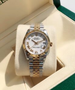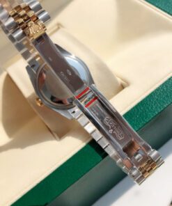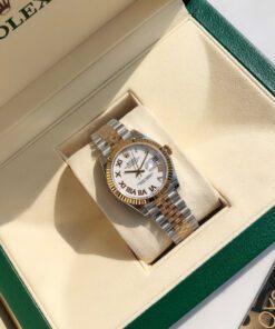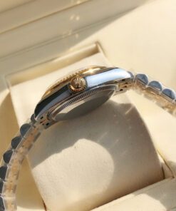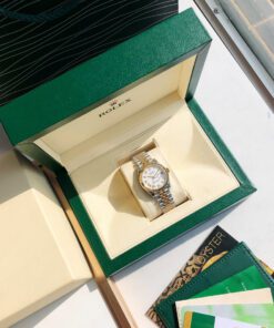 Rolex Lady-Datejust 31mm, gefertigt aus Oystersteel mit hoher Korrosionsbeständigkeit, angetrieben von Kaliber 2236 für außergewöhnliche Stabilität. Oyster-Gehäuse mit verschraubtem Gehäuseboden und Twinlock-Doppel-Wasserdichtigkeitssystem. Kratzfestes Saphirglas mit 2,5-facher Cyclops-Linse bei 3 Uhr. Oyster-Armband mit verdeckter Crownclasp-Faltschließe für nahtlose Integration.