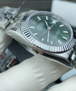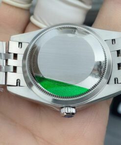 Rolex Datejust mit einem 31mm Edelstahlgehäuse und Saphirglas. Verfügt über ein automatisches Uhrwerk, grünes Zifferblatt und Jubilee-Armband für elegante Weiblichkeit.