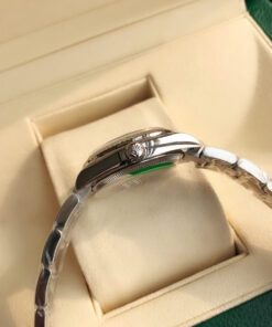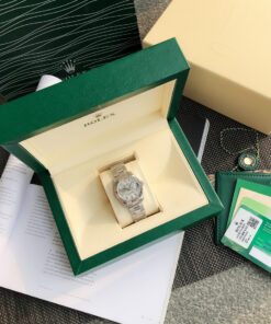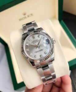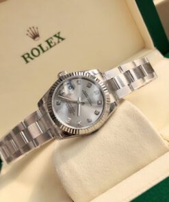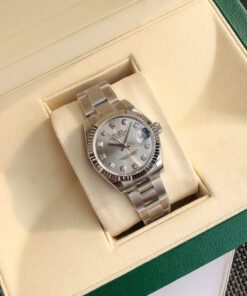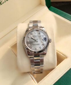 Rolex Lady-Datejust. Mechanisches Automatikwerk mit Schweizer Kaliber 2236. Gehäuse aus 904L-Edelstahl mit polierter Oberfläche. Kratzfestes Saphirglas mit Cyclops-Linse. Edelstahlarmband mit verdeckter Kronenschließe. Elegantes und zeitloses Design.