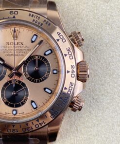 Rolex Cosmograph Daytona, ausgestattet mit einem Roségoldgehäuse, 4130 automatisches Chronographen-Uhrwerk, Saphirglas und einem Oystersteel-Armband.