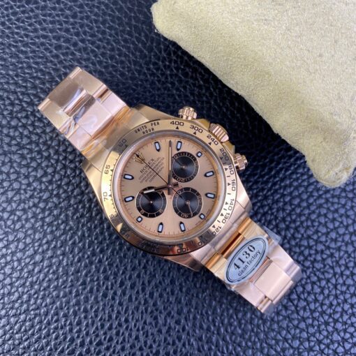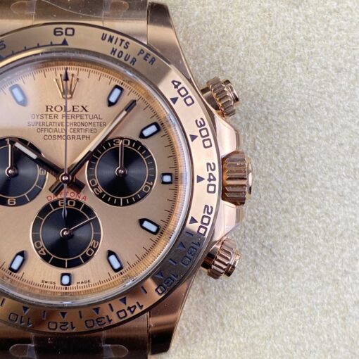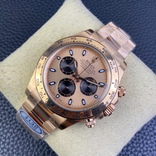 Rolex Cosmograph Daytona, ausgestattet mit einem Roségoldgehäuse, 4130 automatisches Chronographen-Uhrwerk, Saphirglas und einem Oystersteel-Armband.