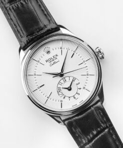 Rolex Cellini Date mit 39mm Edelstahlgehäuse und GMT-Funktion. Verfügt über ein gewölbtes Saphirglas und italienisches Lederarmband. Ausgestattet mit einem Shanghai mechanischen Uhrwerk für zuverlässige Zeitmessung.
